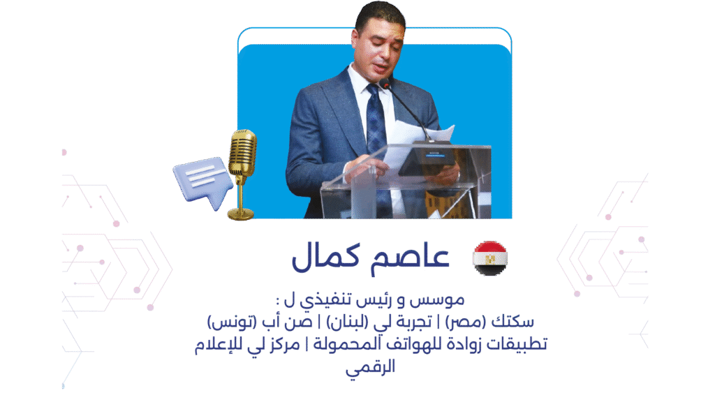 موسس و رئيس تنفيذي ل :سكتك (مصر) | تجربة لي (لبنان) | صن أب (تونس) تطبيقات زوادة للهواتف المحمولة | مركز لي للإعلام